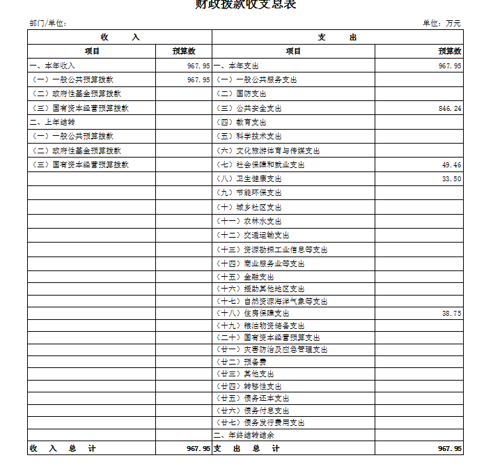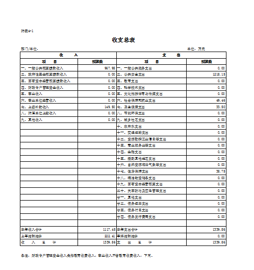 一、部门收支预算总表