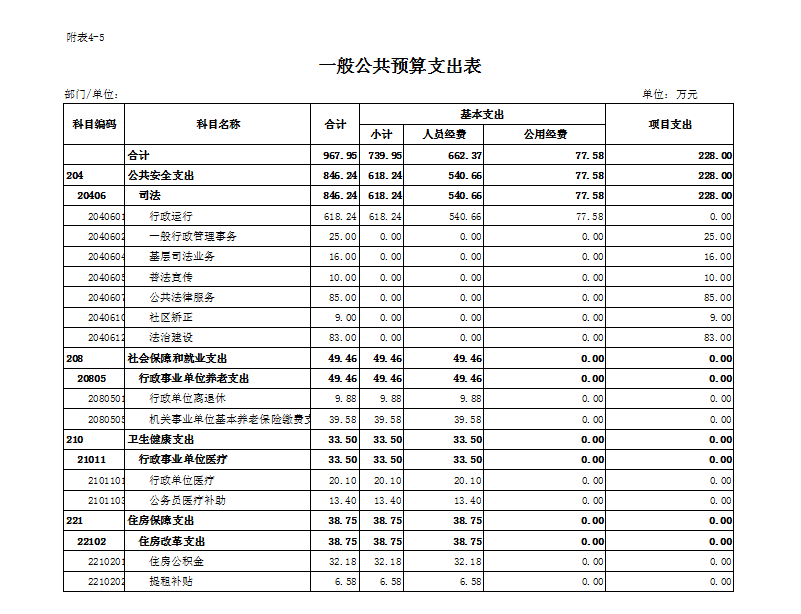 五、一般公共预算支出表