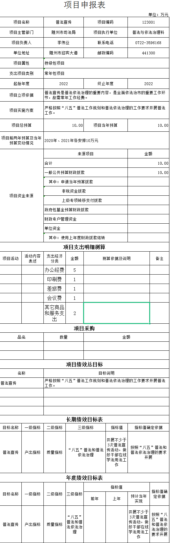 2022年市司法局重点项目是根据部门主要职责编制,对项目制定细化、明确的预算绩效目标和可考核、可量化的绩效指标,并加强对绩效目标的审核,将其作为预算编制和资金安排的前置条件和重要依据。