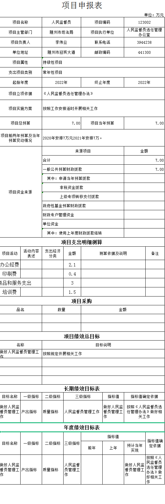 整体绩效目标:做好人民监督员工作。