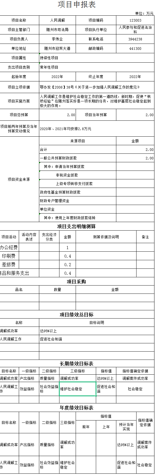 整体绩效目标:调解率达到100%。