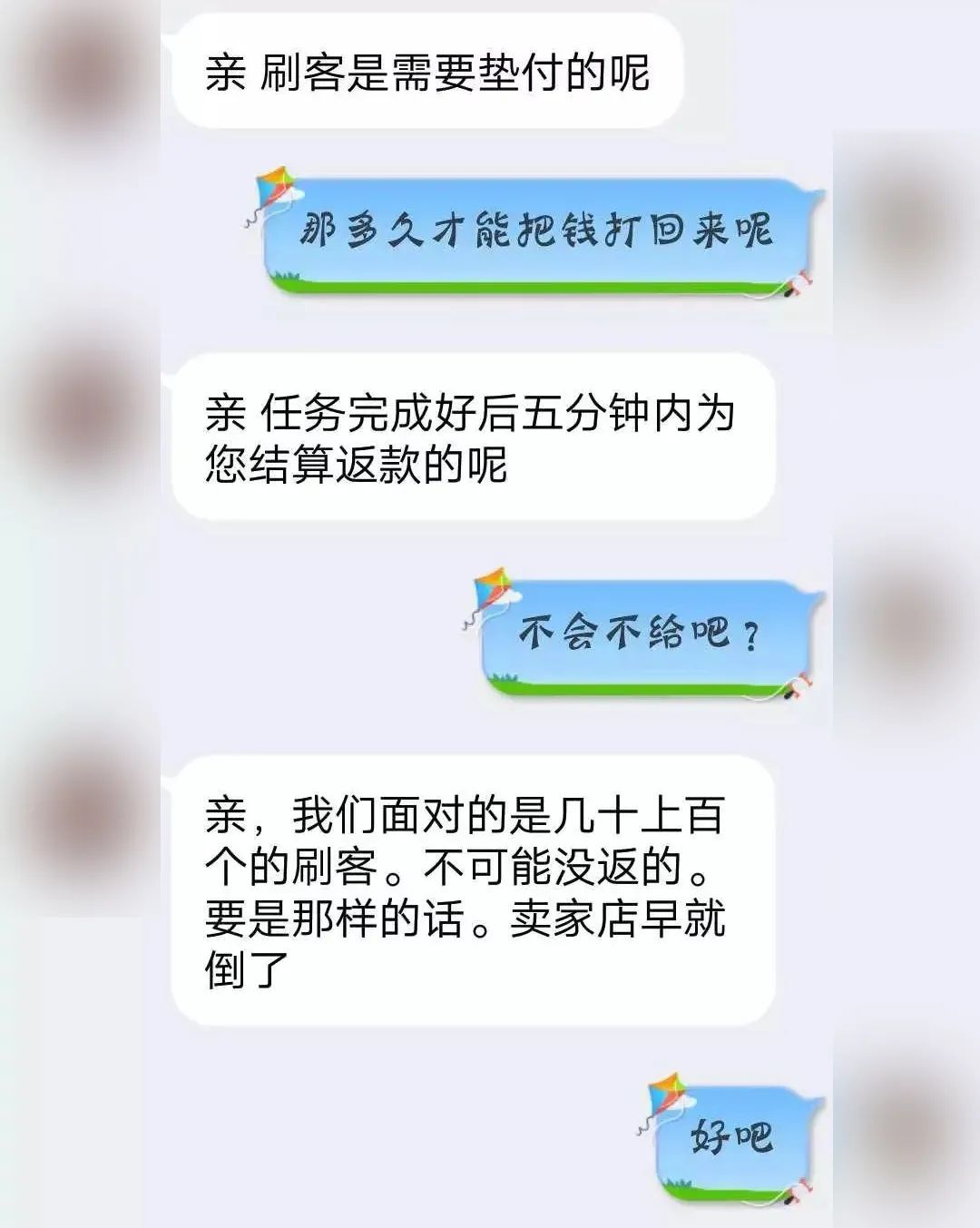 从第3、4单开始,骗子就会以“任务未完成”“卡单”“未按操作进行”等各种借口拒绝支付货款和酬劳,并不断鼓励你继续刷单、刷联单,且表示只有不断刷单才能拿到之前的货款和酬劳。(假的)如果你听信了骗子的话,想要拿回之前的货款和酬劳,那就一步步陷得更深了。