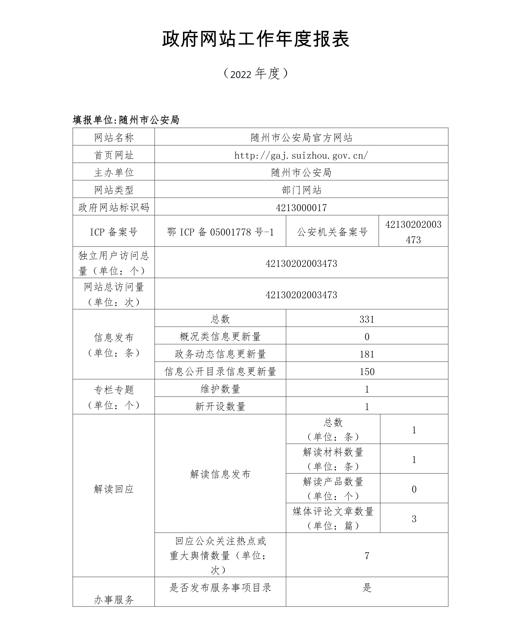 政府网站监管年度报表