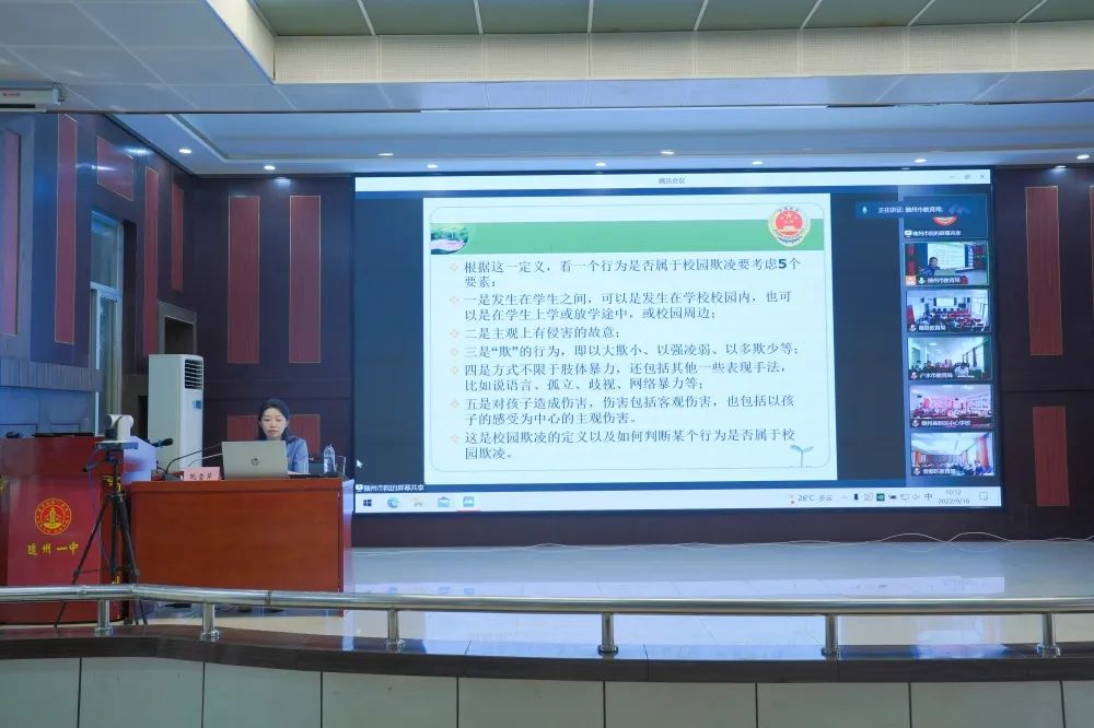 9月16日,市教育局与市检察院联合举行“检教同行 守护校园安全”未成年人权益保护工作推进会。本次会议以线上线下方式举行。市政府副市长罗兰,市检察院代理检察长盛勇,市教育局局长王桂兰,以及市、县两级检察院检察长、教育局局长,随州高新区、大洪山风景名胜区中心学校校长,市直学校(幼儿园)校(园)长在随州一中主会场参加会议。