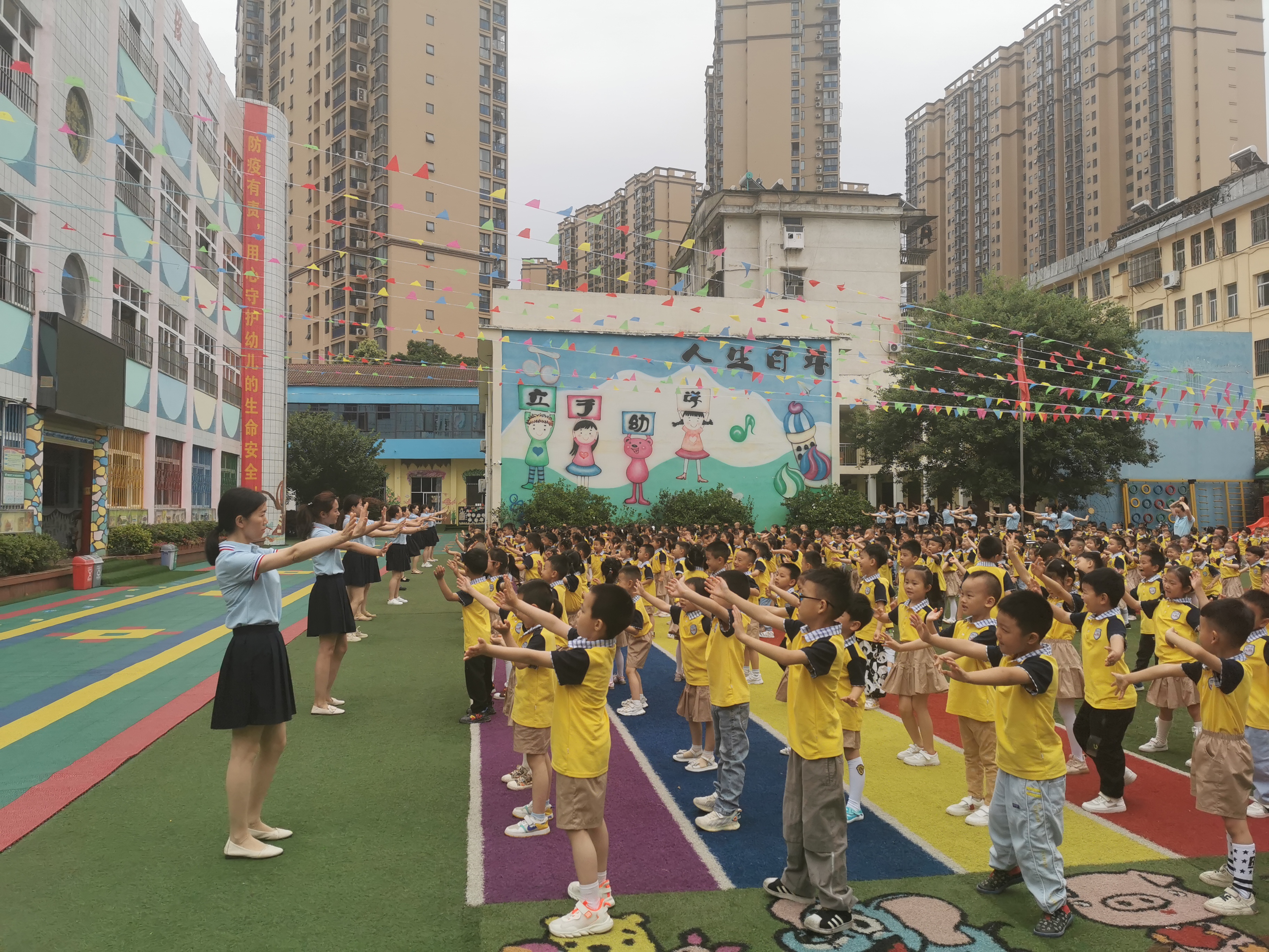图为:曾都区幼儿园开展室外活动