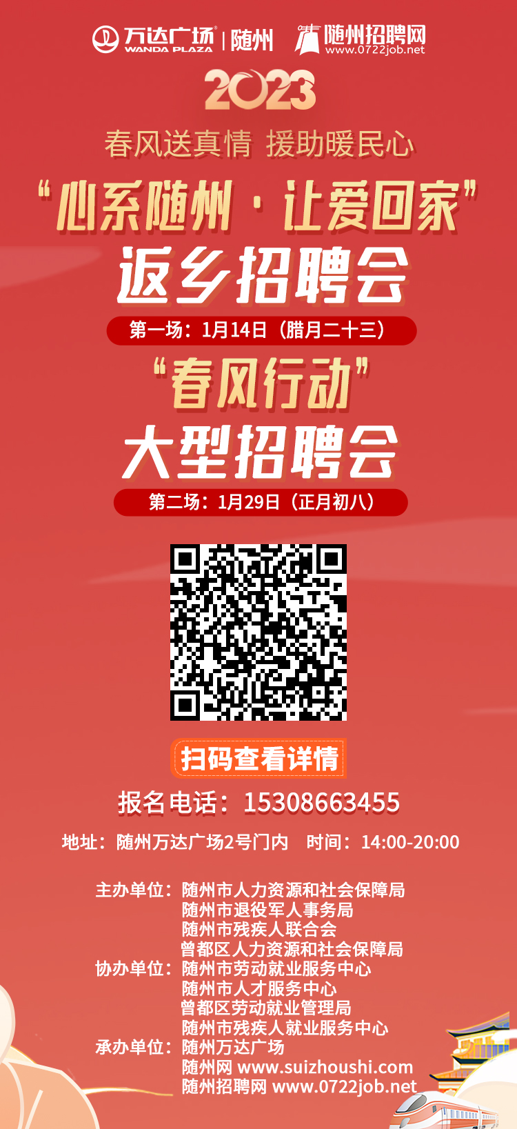 【第一场】“心系随州·让爱回家”返乡招聘会,1月14日(腊月二十三)14:00--20:00