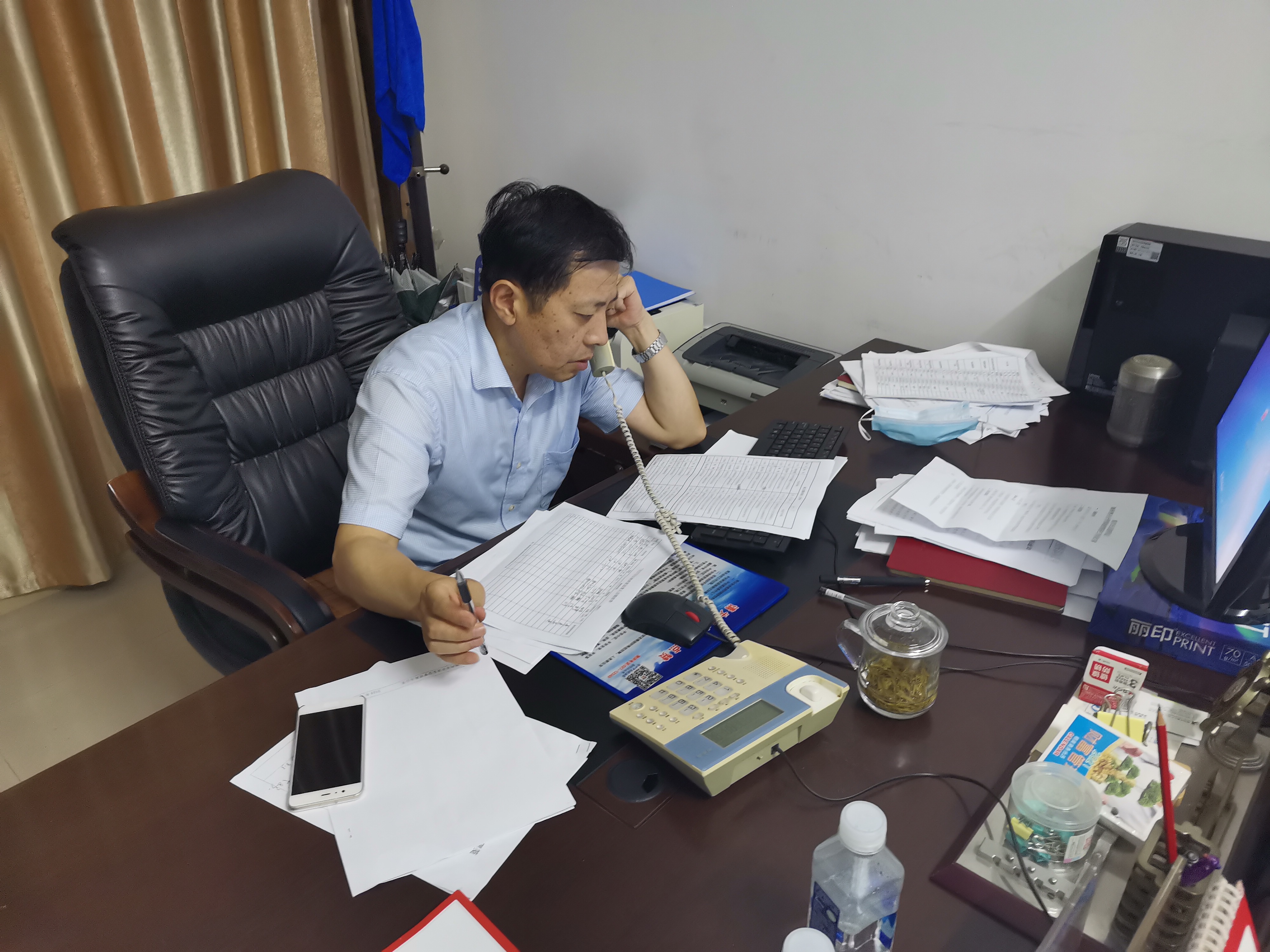 ▲图为:下沉党员干部连夜加班对不在家的住户进行电话调查和摸排