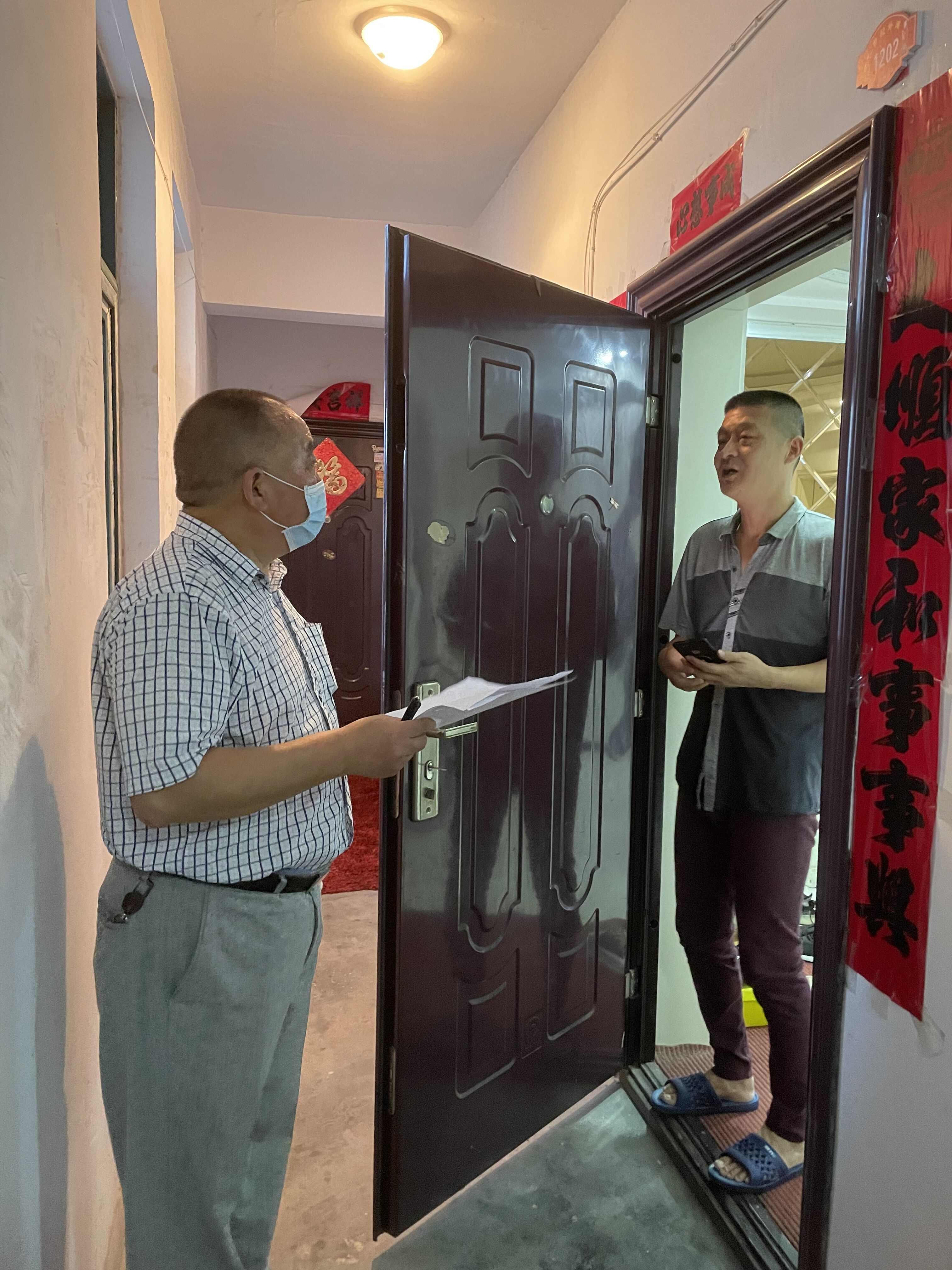 ▲图为:下沉党员干部下班后赶到责任社区认领各自排查任务下沉党员干部逐户摸排外地返随和居民疫苗接种情况并做好登记,同时宣传疫情防控形势,劝说居民积极主动接种新冠疫苗