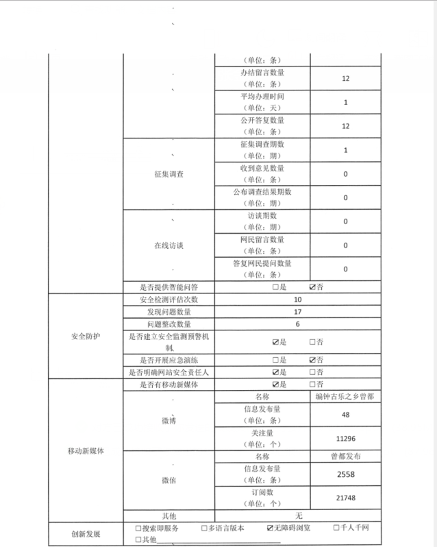 曾都区2020年政府网站工作年度报表