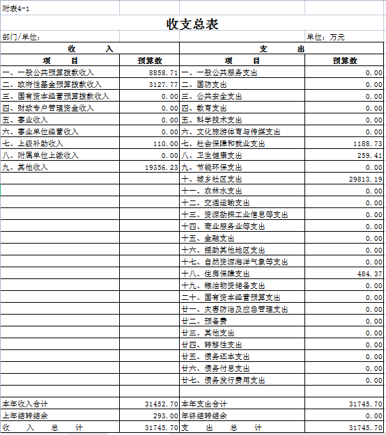 委系统汇总预算收入31745.7万元,其中:经费拨款8858.71万元,政府性基金3127.77万元,上级补助收入110万元,其他收入19356.23万元,上年结转293万元。比上年增加7782.31万元,增加了32.48%。其中其他收入增加了10766.93万元,主要原因是其他收入中包含了债券项目收入。