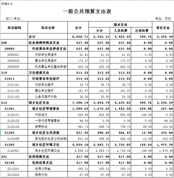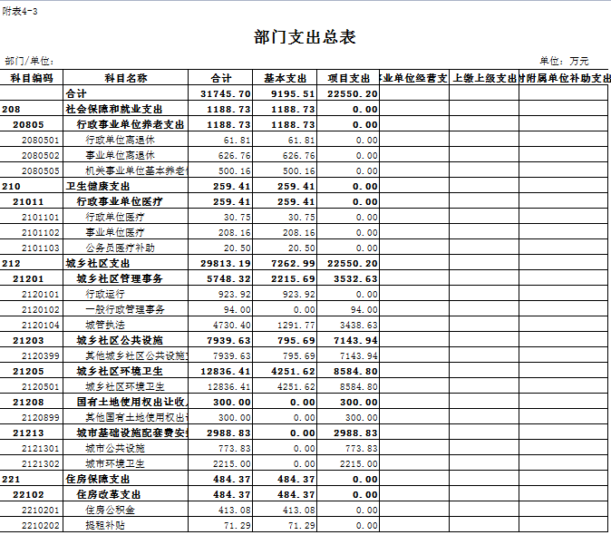委系统汇总预算支出31745.77万元,其中:社会保障和就业支出1188.73万元,卫生健康支出259.41万元,城乡社区支出29813.19万元,住房保障支出484.37万元。比上年增加7782.31万元,增加了32.48%。主要原因是包含了债券项目支出。