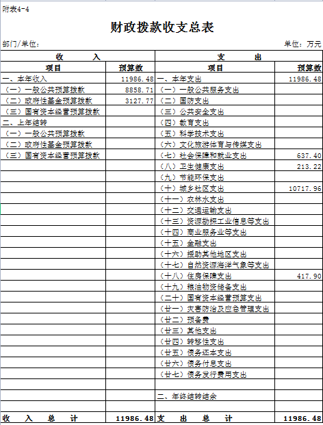 委系统汇总财政拨款支出11986.48万元,其中,社会保障和就业支出637.4万元,医疗卫生支出213.22万元,城乡社区事务支出10717.96万元,住房保障支出417.9万元。比上年增加566.41万元,增加4.96%。增加原因为正常的人员经费增长。