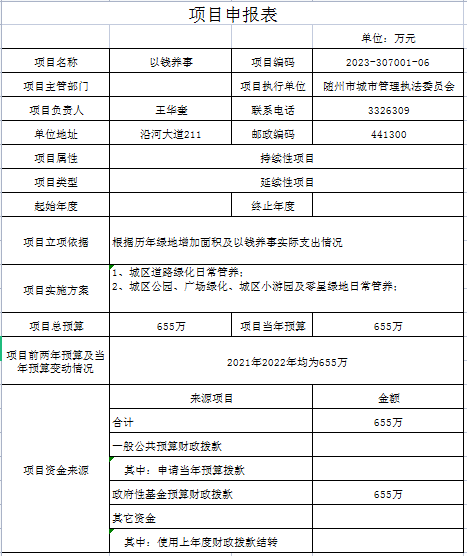 (一)1、“以钱养事”项目主要内容是园林二级单位以钱养事人员经费和园林养护经费。按月考核各单位管护片区绿化管护质量,按考核结果在每月基数上扣款后拨付给各二级单位。2023年预算安排655万元,资金来源为当年政府性基金。