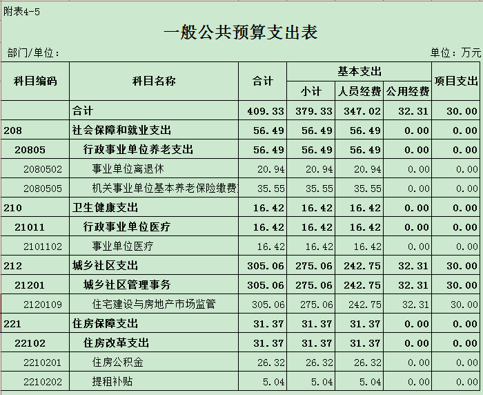 1、城乡社区支出(类)城乡社区管理事务(款)住房建设和房地产市场监管(项):是指反映调控房地产市场运行,研究拟定城镇住房制度改革法规、对住房公积金和其他房改资金进行政策指导并监督使用等方面的支出。