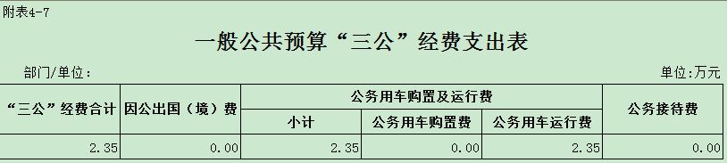 公务用车运行维护费2.35万元,与上年2.35万元一致,主要原因是:严格执行八项禁令规定,严格控制支出。