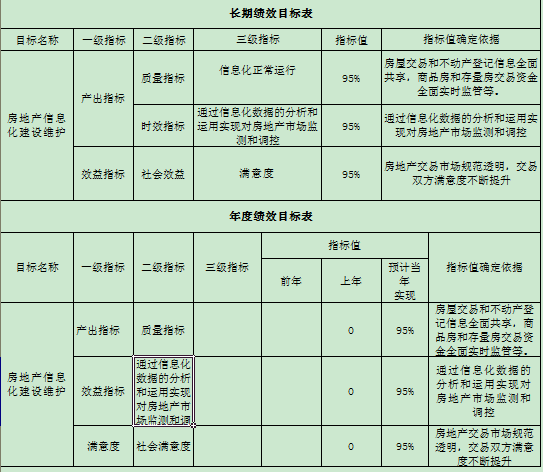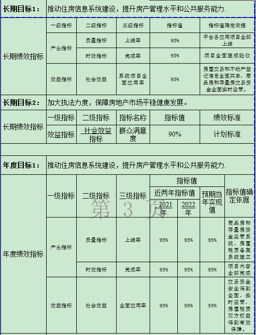 3、年度目标(1)推动住房信息系统建设,提升房产管理水平和公共服务能力, 具体指标设置为: