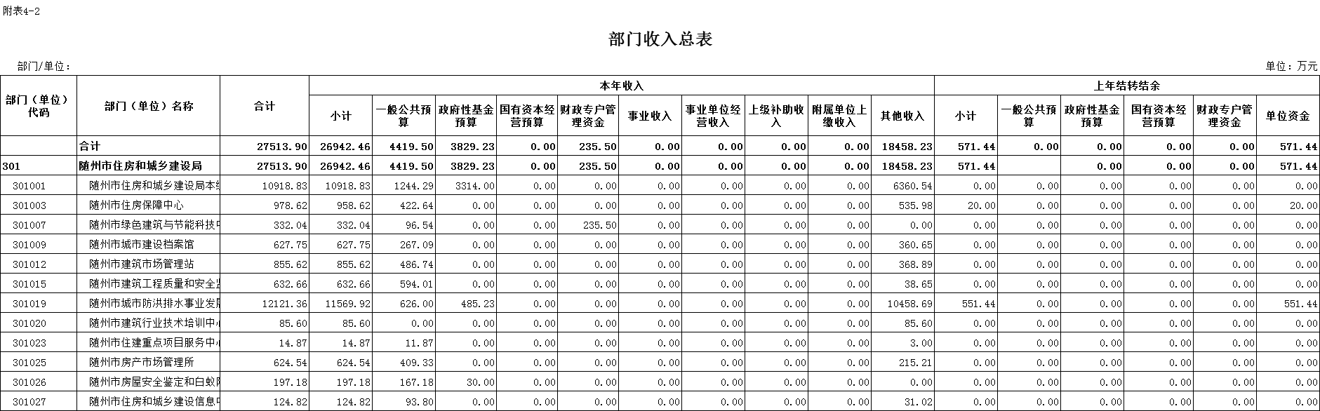 二、部门收入总表