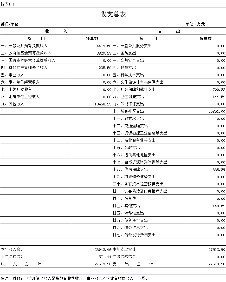 四、财政拨款收支总表