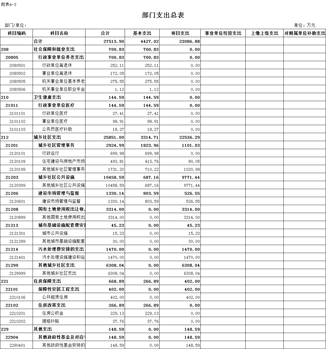 三、部门支出总表