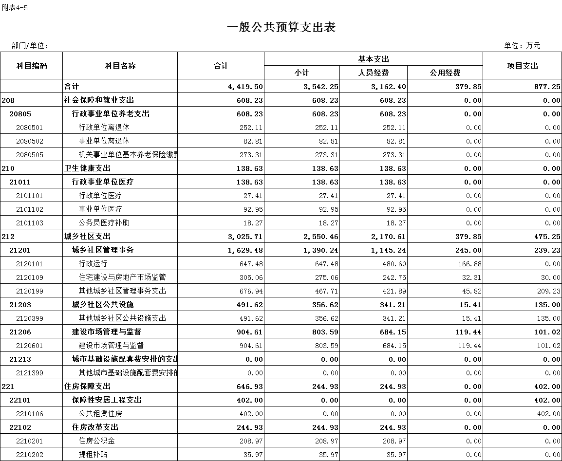行政运行(城乡社区管理事务2120101):反映行政单位的基本支出。