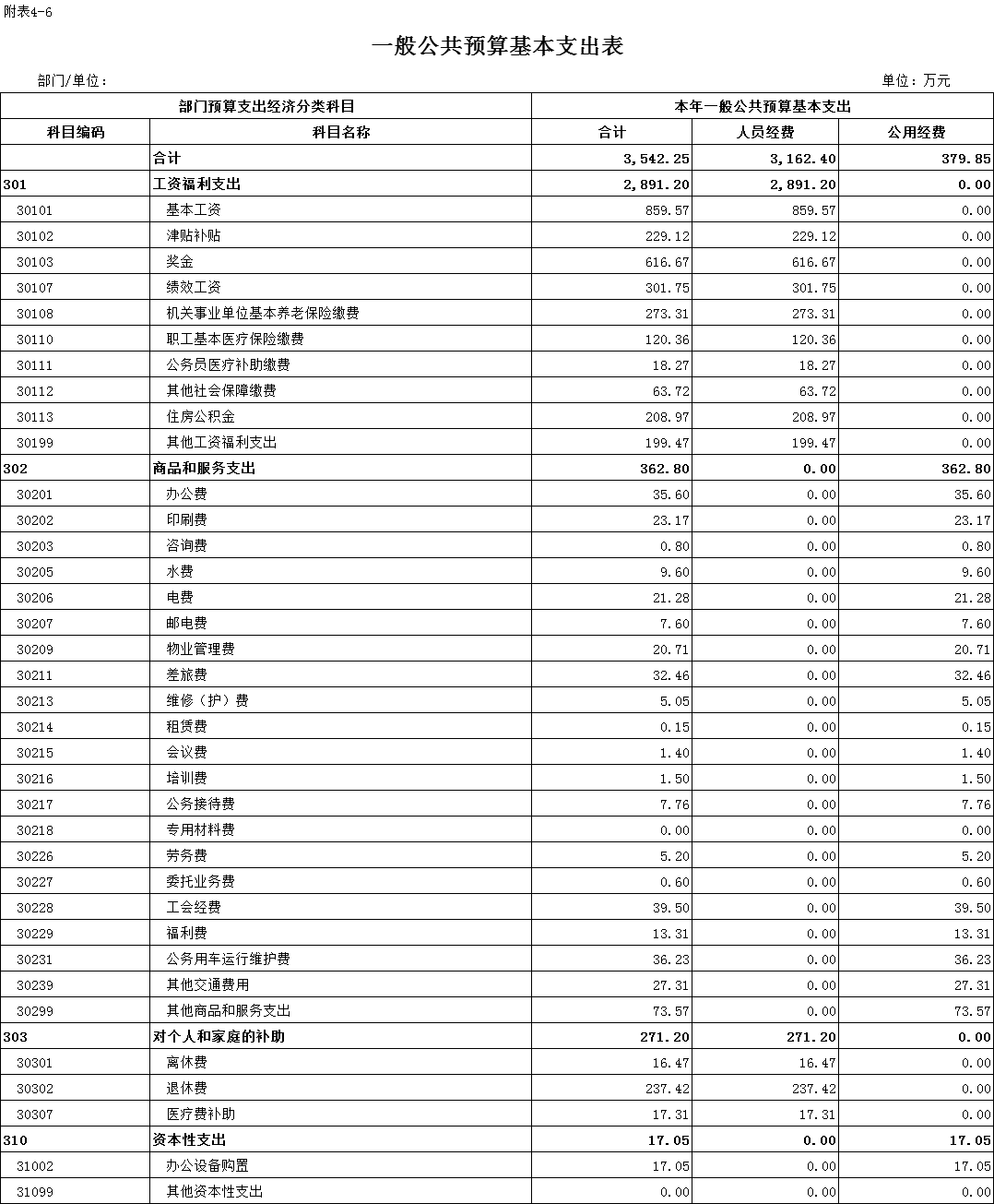 六、一般公共预算基本支出表