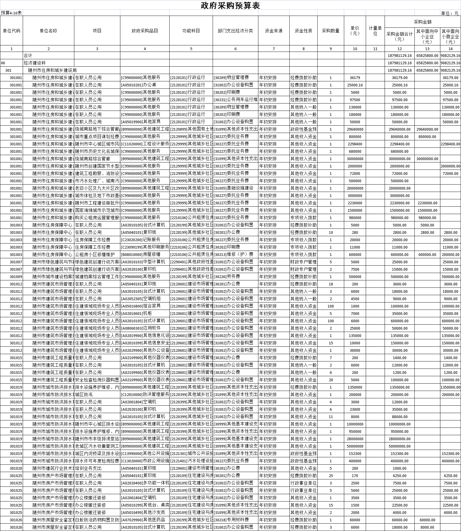 十、政府采购预算表