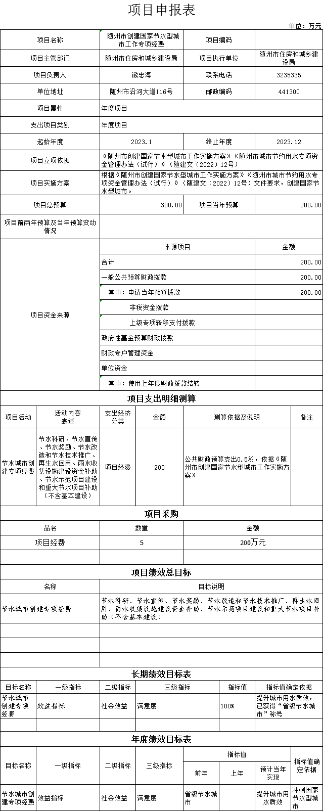 (六)1、“365禁用取消提款什么意思_365bet游戏下载_365体育ribo88创建国家节水型城市工作专项经费”项目主要内容是根据《365禁用取消提款什么意思_365bet游戏下载_365体育ribo88创建国家节水型城市工作实施方案》《365禁用取消提款什么意思_365bet游戏下载_365体育ribo88城市节约用水专项资金管理办法(试行)》(随建文〔2022〕12号)文件要求,创建国家节水型城市。2023年预算安排200万元,资金来源为当年一般公共预算资金。