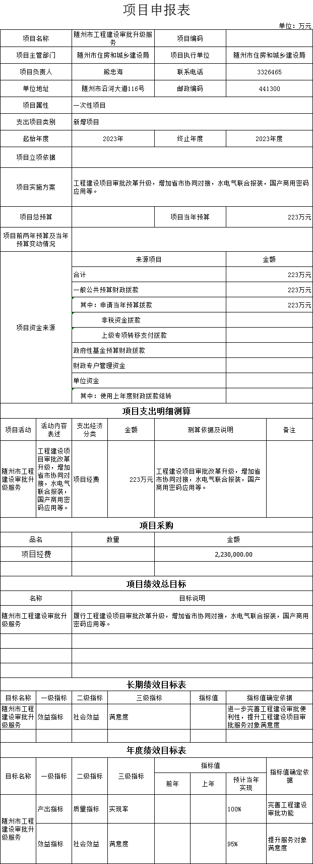 2、项目绩效总目标是:履行工程建设项目审批改革升级,增加省市协同对接,水电气联合报装,国产商用密码应用等。