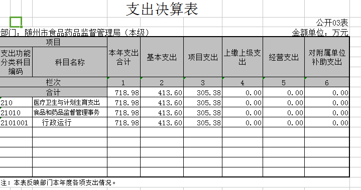 市局机关全年支出718.98万元,财政拨款支出617.59万元。其中:工资福利支出158.56万元,公用经费支出114.55万元,对个人和家庭补助支出39.10万元,项目支出305.38万元。项目支出主要用于食药安全监管差旅费用、食药安办经费、投诉举报奖励基金、药品不良反应监测及评价费用、食品药品安全监督抽验及风险监测费用 、应急管理费用、行政审批费用、信息化综合监管平台建设费用、拨付二级单位项目经费等。