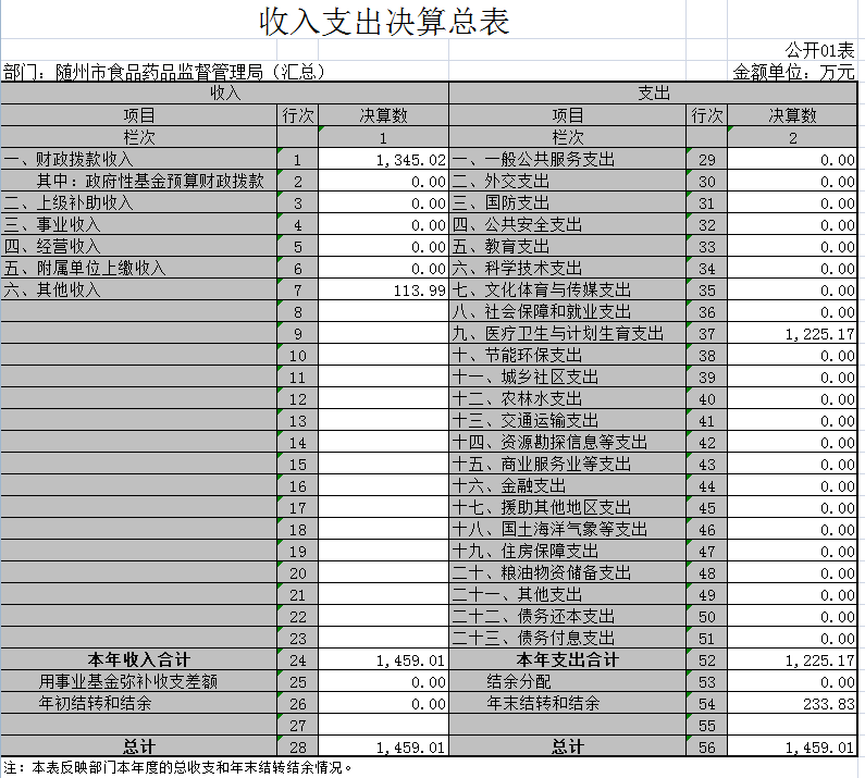 部门全年总收入1459.01万元,其中:财政拨款1345.02万元,其他收入113.99万元。部门全年总支出1225.17万元,其中:财政拨款支出1123.78万元(基本支出491.40万元,项目支出632.38万元),其他资金支出101.39万元。
