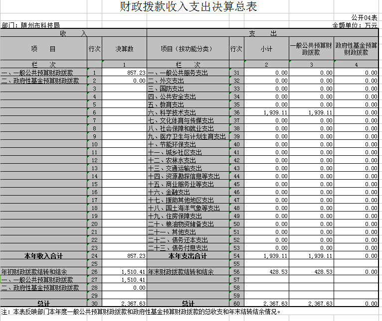 2015年支出2367.63万元,其中:科学技术支出1939.11万元,结余428.53万元。