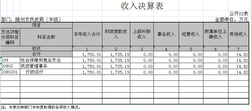 2016年收入决算1750.01万元,其中:财政拨款收入1735.19万元,其他收入14.82万元。上年结转和结余1399.40万元。