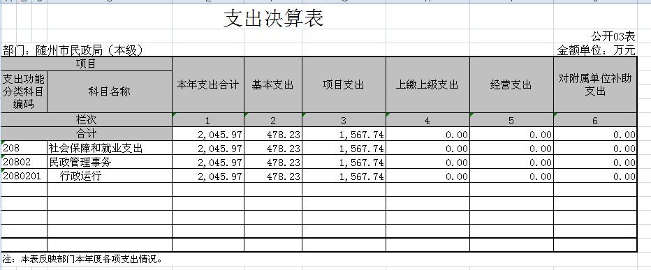 2016年支出决算2045.97万元,其中:基本支出478.23万元,项目支出1567.74万元.结余1103.44万元。
