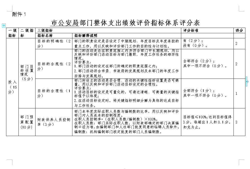| 投入 管理 (15分) | 项目 立项 (9分) | 立项 规范性 (3分) | 项目的申请、设立过程是否符合相关要求,用以反映和考核项目立项的规范情况。评价要点:1、项目是否按规定的程序申请设立;2、所提交材料、文件是否符合相关的要求;3、事前是否已经过必要的可行性研究、专家论证、风险评估集体决策等 | 1、全部符合得3分;2、一项不符合扣1分。 | 3 |