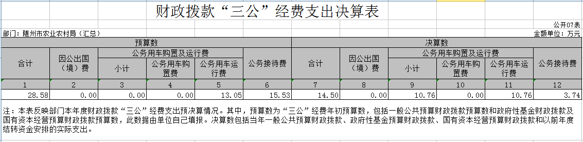 365禁用取消提款什么意思_365bet游戏下载_365体育ribo88农业农村局(本级)2020年度 “三公”经费支出决算数为9.13万元,比年初预算14.12万元减少4.99万元,减少35.34%,主要原因为:20年加强了公务接待控制减少了“三公”经费支出。比上年9.90万元,减少0.77万元,减少7.78%,主要原因是20年加强了公务接待的控制及公车的使用管理。2020年因公出国(境)未发生支出。其中:因公出国(境)0批次0人,支出决算数均为0万元,与上年比无变化;公务接待支出决算数为1.41万元,较上年2.62减少1.21万元,减少46.18%,原因是2020年较上一年进一步加强了公务接待的控制。全年公务接待累计接待约30批次,接待人数约182人次。公务用车运行维护费支出决算数为7.72万元,较上年7.28增加0.44万元,增加6.04%,原因是本年增加了公车外派工作安排。