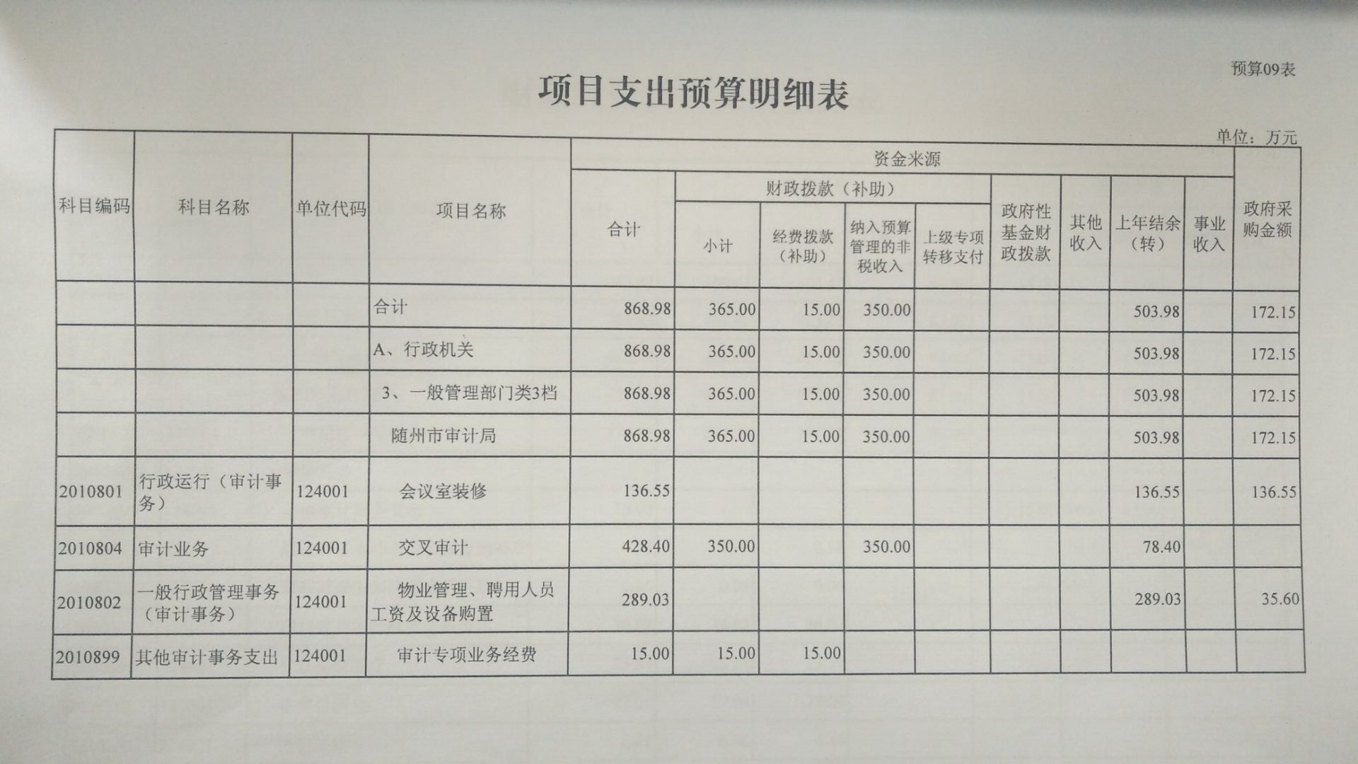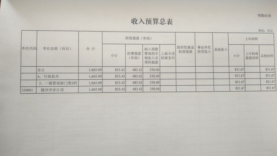 | 财政拨款收支预算总表 | |||||