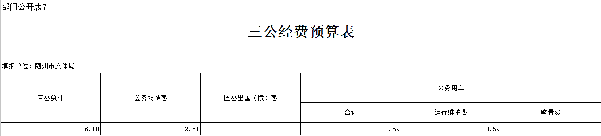 4.“三公经费”:纳入财政预决算管理的“三公经费”,是指部门用财政拨款安排的因公出国(境)费、公务接待费和公务用车购置及运行维护费。其中,因公出国(境)费反映单位工作人员公务出国(境)的住宿费、旅费、伙食补助费、杂费、培训费等支出;公务接待费反映单位按规定开支的各类公务接待(含外宾接待)支出;公务用车购置及运行维护费反映单位公务用车购置费及租用费、燃料费、维修费、过路过桥费、保险费等支出。