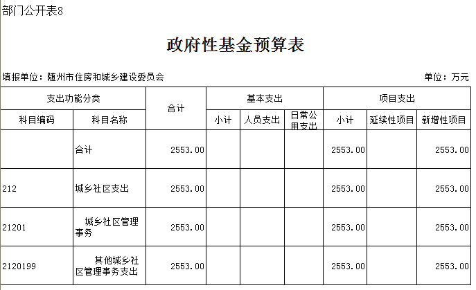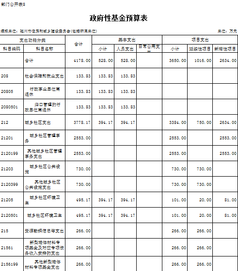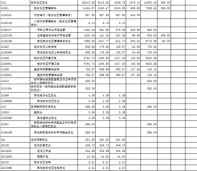 8、城乡社区事务(类)城乡社区管理事务(款):反映城乡社区管理事务支出。包括行政运行(厅机关及厅属实行公务员管理的事业单位的基本支出)、一般行政管理、机关服务、工程建设标准规范编制与监管、工程建设管理、执业资格注册、资质审查等方面的支出。