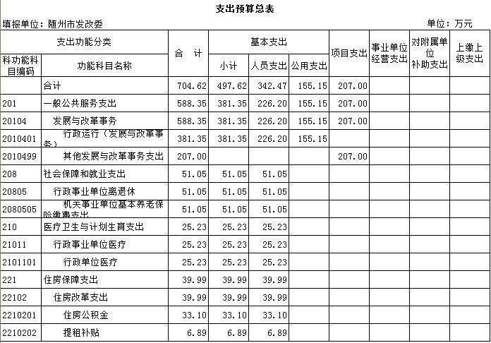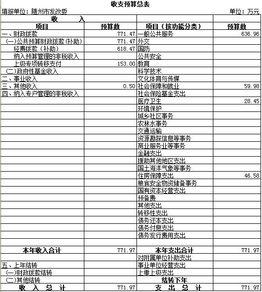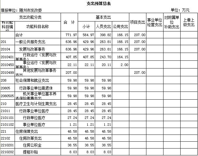发改委本级预算公开报表: