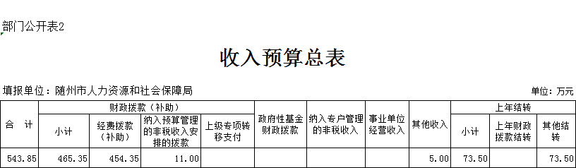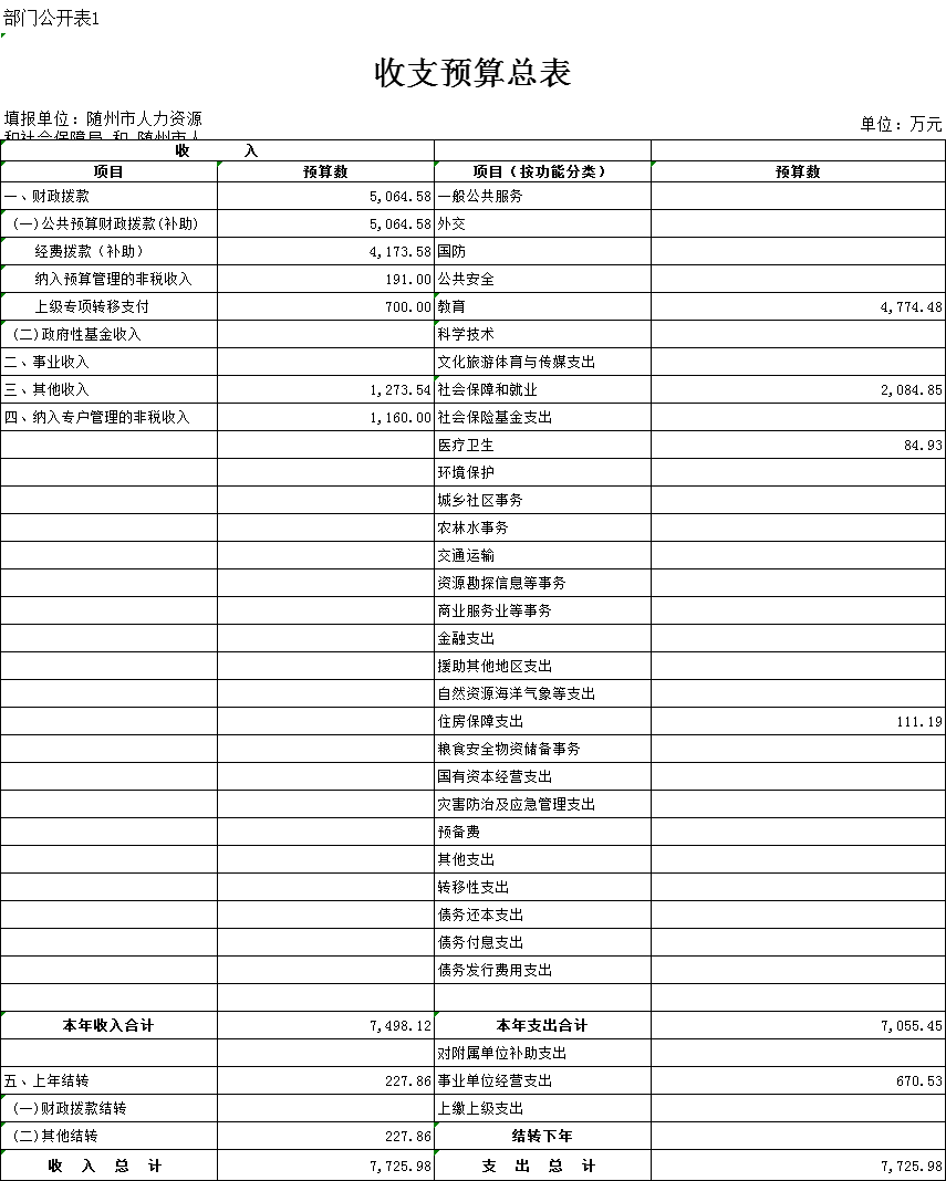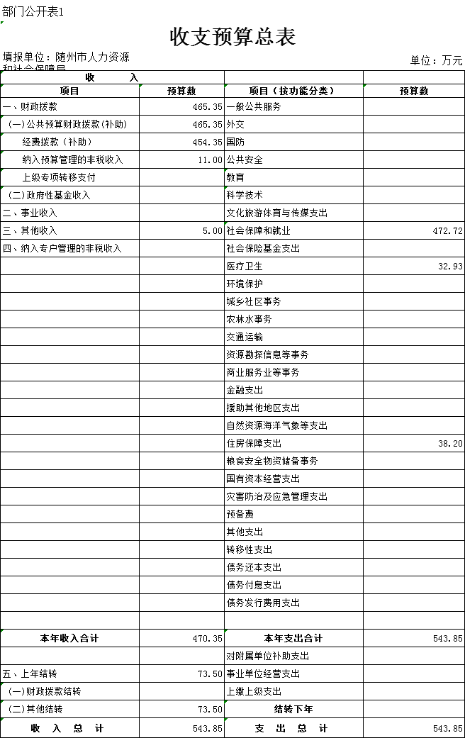 一、部门收支预算总表