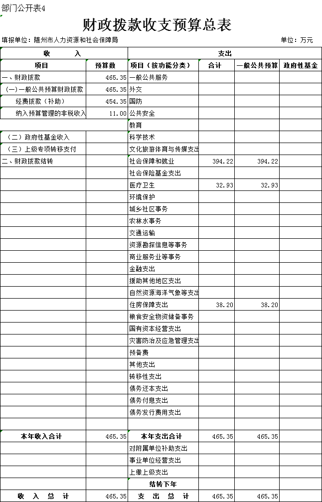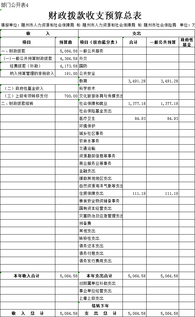 四、财政拨款收支总表