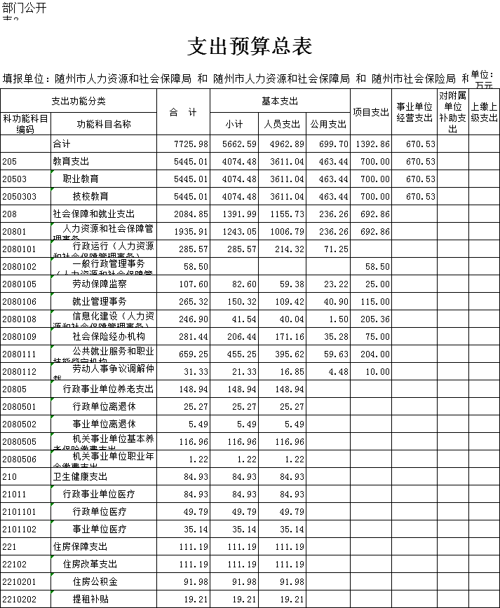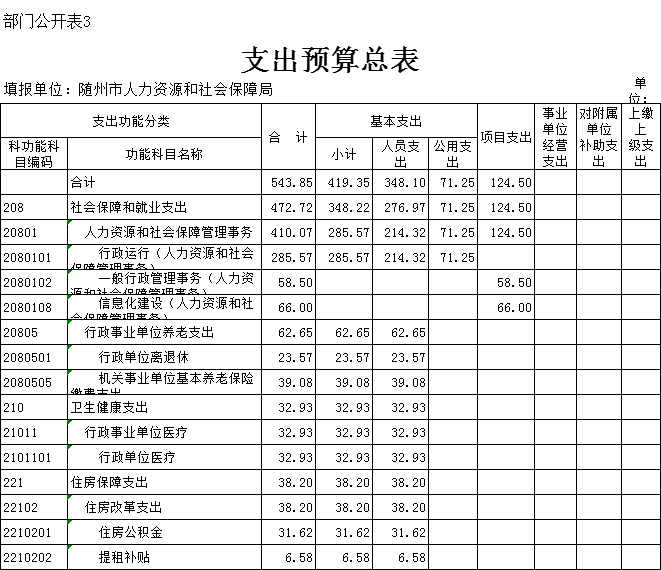 三、部门支出总表