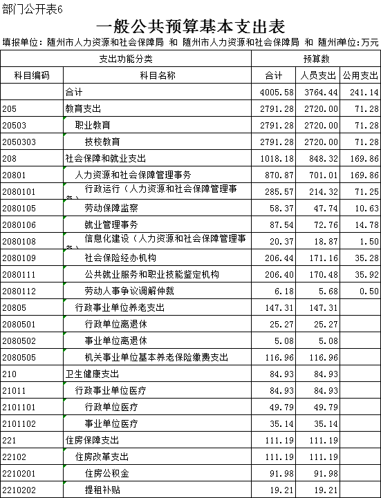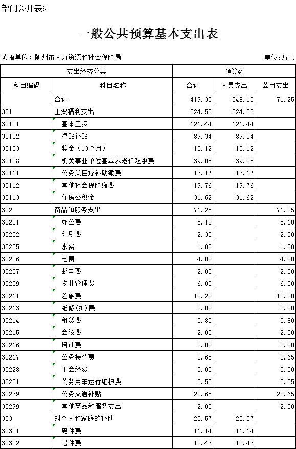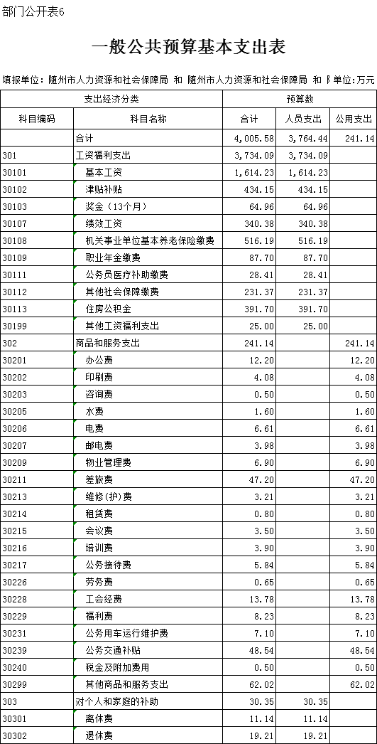 六、一般公共预算基本支出表