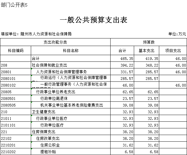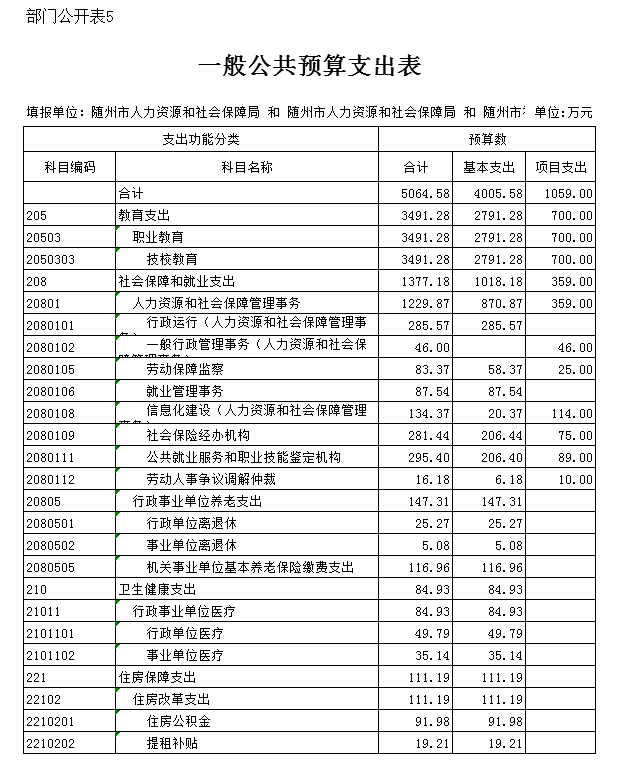 五、一般公共预算支出表