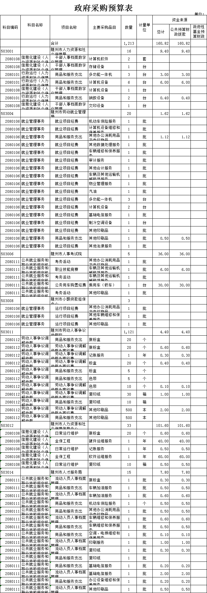 十、政府采购预算表