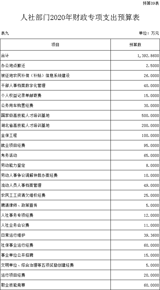 九、财政专项支出预算表