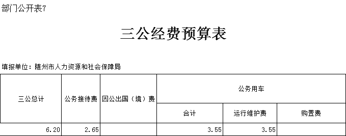 2020年部门“三公”经费预算安排6.2万元,比上年减少0.68万元,减幅9%。原因:人员减少,相应减少了“三公经费”。其中公务接待费2.65万元,比上年减少0.68万元,减幅2%,减少原因:严格控制“三公经费”支出。2020年无因公出国人员计划,所以因公出国(境)费未做预算,与上年持平。主要原因:2020年无出国计划。2020年,局机关无公务车购置支出预算,公务用车1辆,公务车运行维护费3.55万元,比上年3.55万元持平。