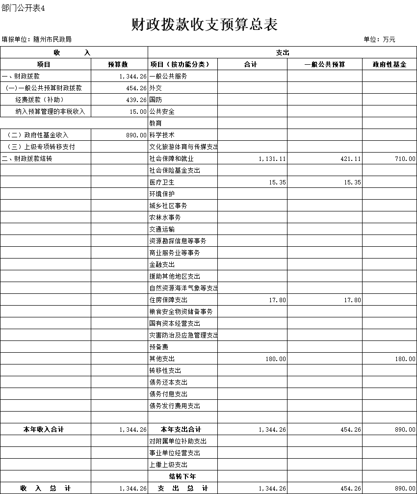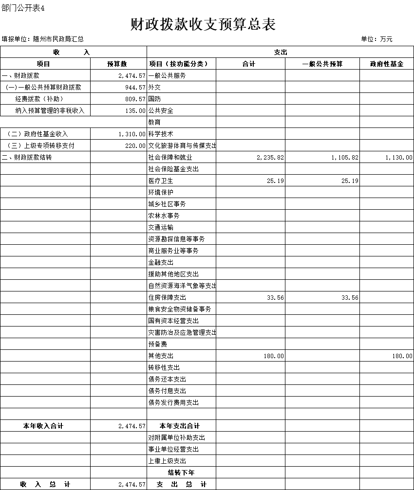 四、财政拨款收支总表