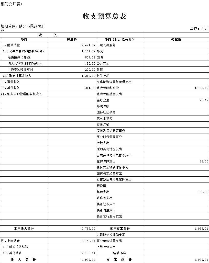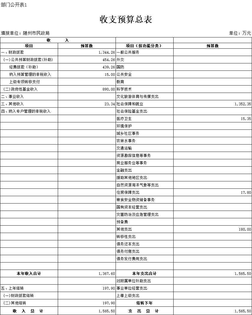 一、部门收支预算总表