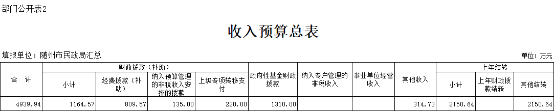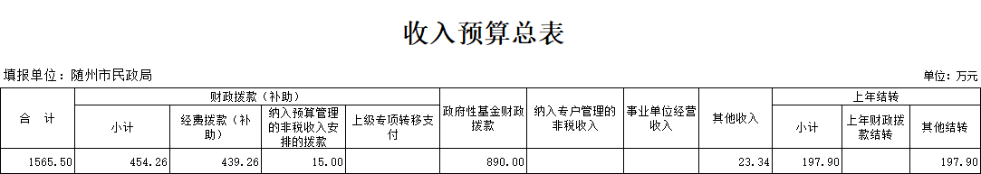 二、部门收入总表